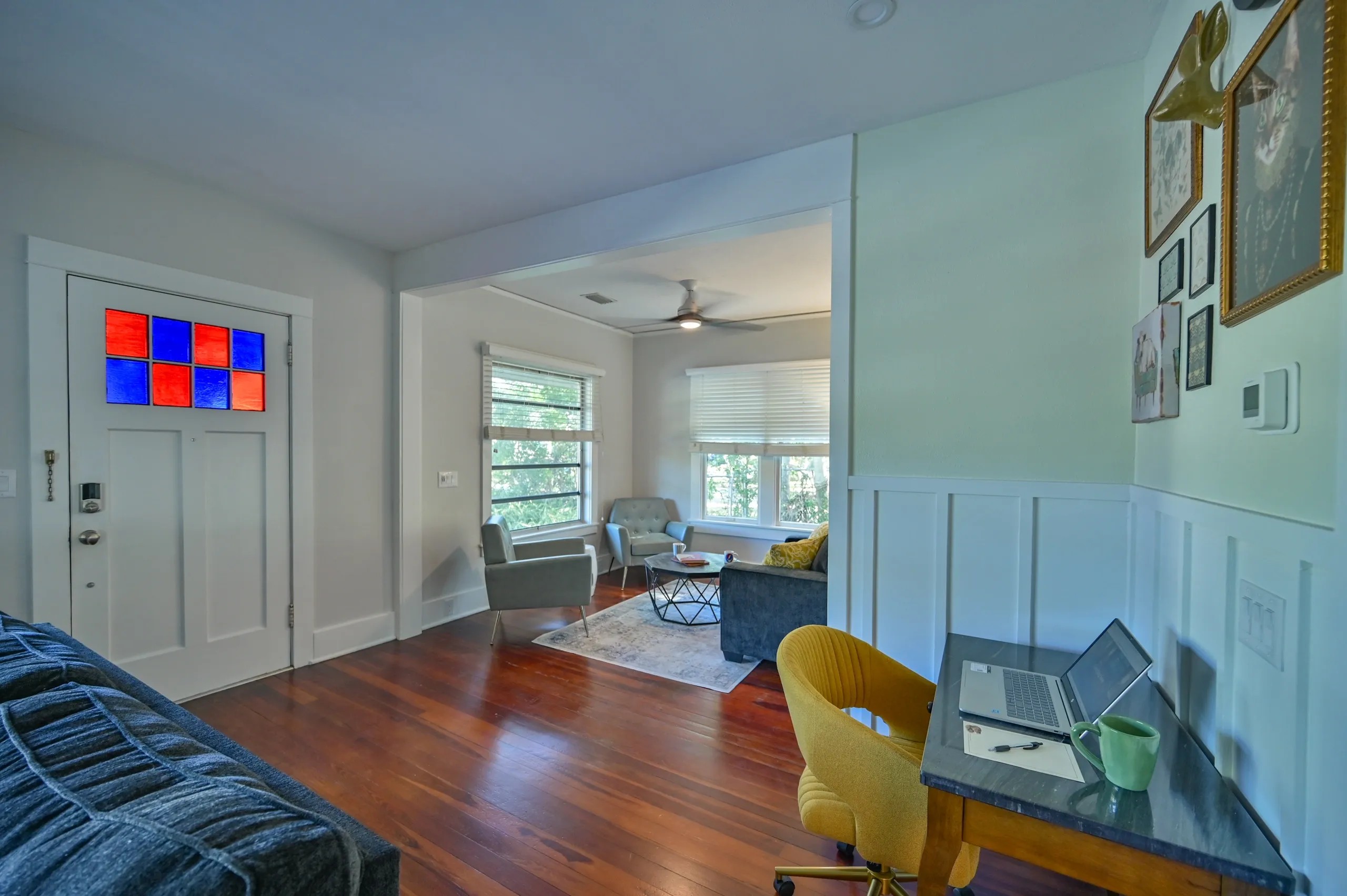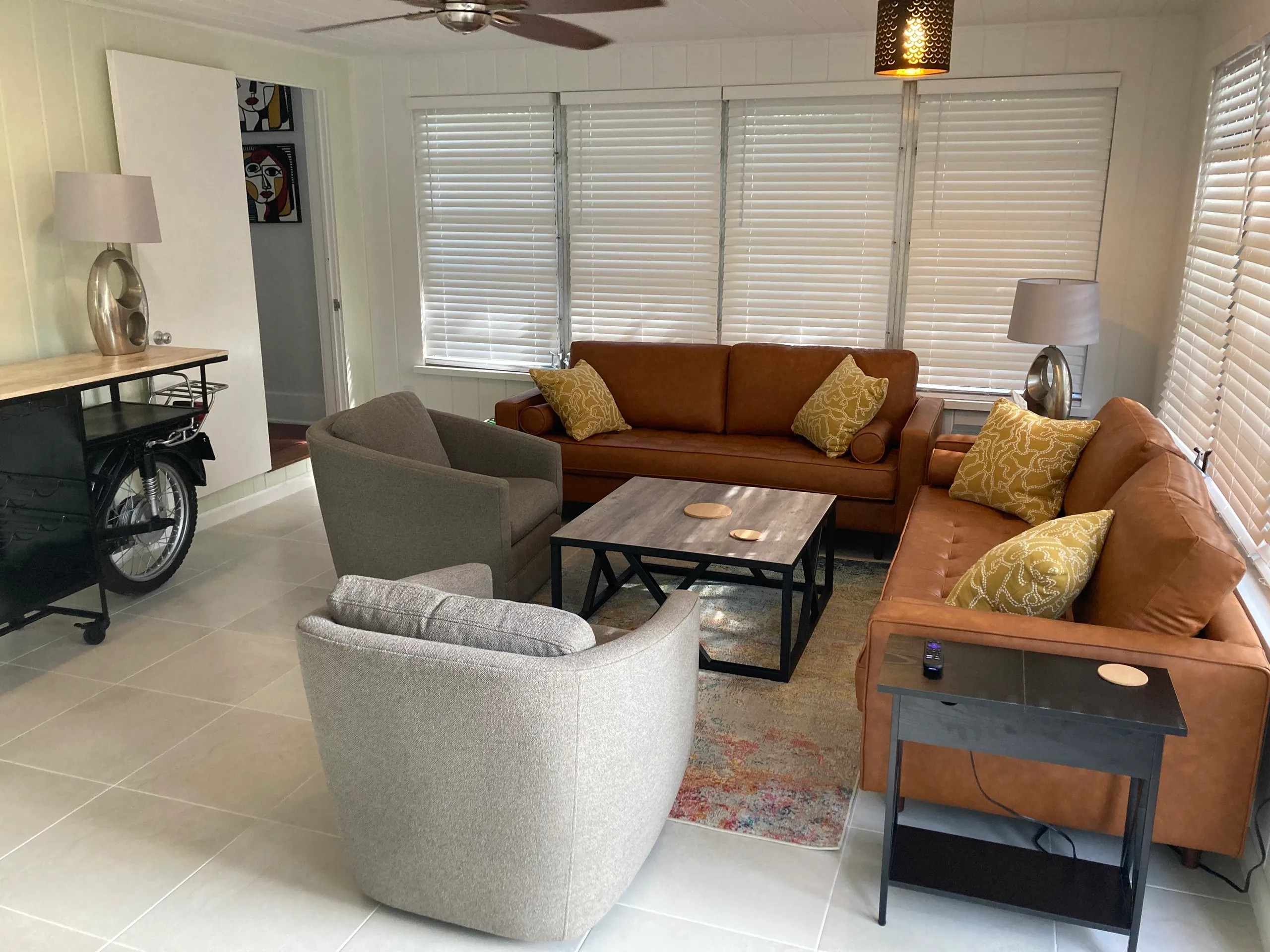 Welcome to Hillview Digs! Hillview Digs is a fully furnished two story Farmhouse moved from downtown Sarasota in the mid fifties . Just shy of 2000 square feet and equipped with 3 bedrooms, 2.5 bathrooms, an office area, a family room/den separate from the main living room. For your convenience, the master bedroom is on the first floor with the other 2 bedrooms upstairs. This cozy home features tasteful decor, comfortable hang out spots such as a sitting room, a den with a smart TV and coffee bar and a beautiful spacious outdoor deck. The outdoor deck has ample seating for lounging or entertaining, a gas grill and umbrella for shade. There is one covered parking space as well as an oversized driveway for additional parking. Located in Arlington Park, this beautiful home is close to downtown Sarasota and 6 miles from Siesta Key Beach. Owner may consider a pet upon their discretion and with non-refundable pet fee, NO RESTRICTIVE BREEDS. Available May 2026, call now for more details!